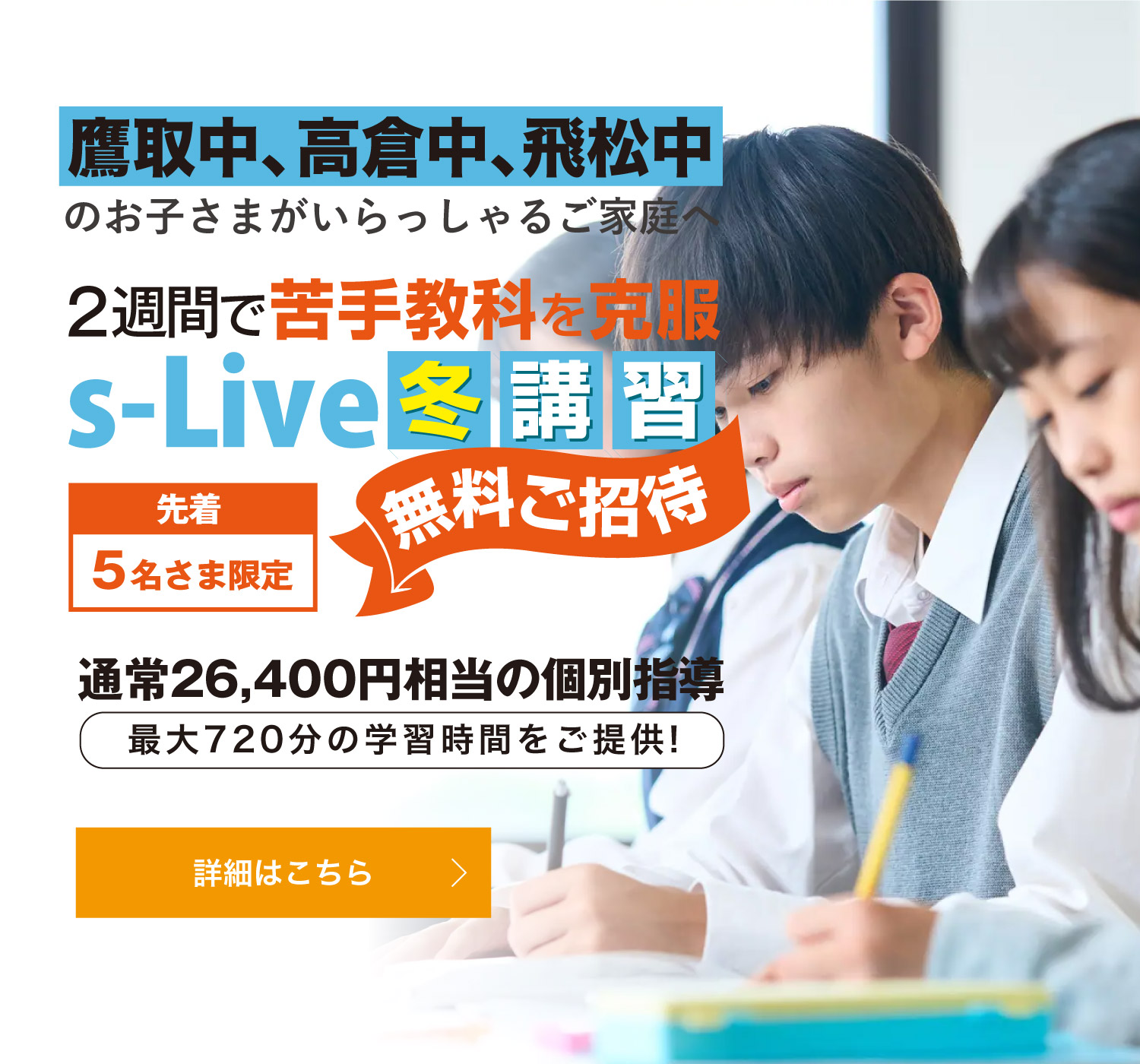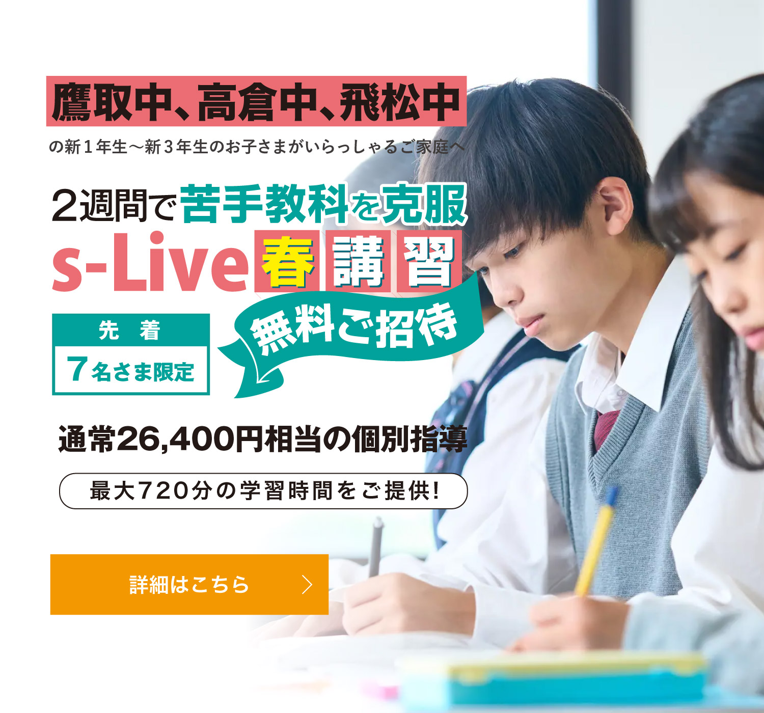 また、定期テスト対策には「学校の教科書準拠の問題集」、入試対策には「入試レベルの問題集」を利用し、段階的に学力を上げていきます。 -